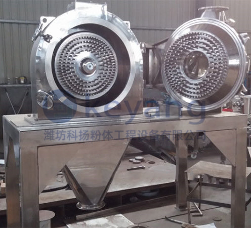 物料由加料系統均勻地送入粉碎室,受到高速旋轉的粉碎裝置的強烈沖擊,同時與篩網沖擊錘之間受到摩擦、剪切、碰撞等多種綜合力的作用,使物料粉碎,被粉碎的物料通過篩網的大小,實現粗細分離,合格產品進入收集系統收集,粗粉在粉碎室進一步粉碎。